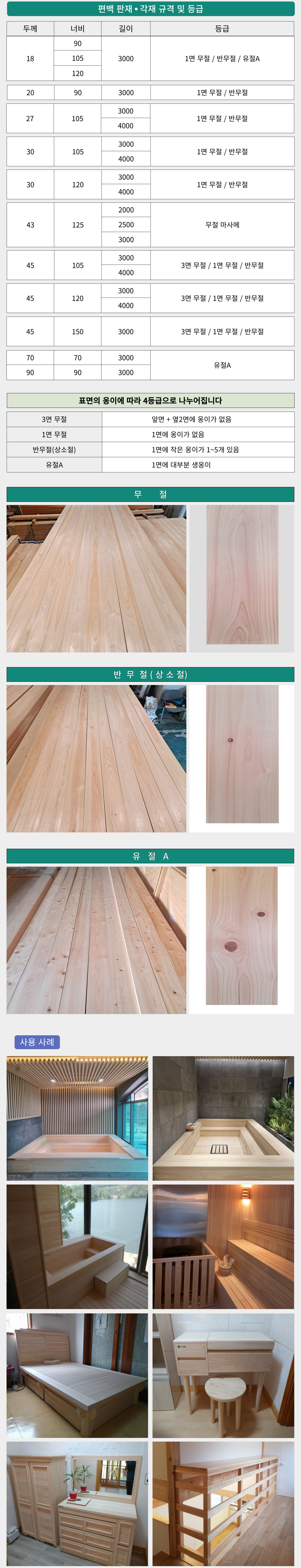 등급 | 3면 무절 - 앞면+옆 2면에 옹이 없음 |